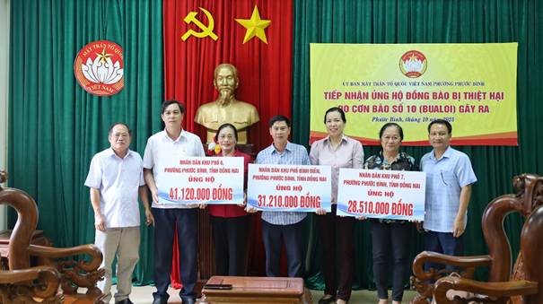 Thực hiện lời kêu gọi của Đoàn Chủ tịch Uỷ ban Trung ương MTTQ Việt Nam và Ủy ban MTTQVN phường Phước Bình về vận động ủng hộ đồng bào khắc phục thiệt hại do cơn bão số 10 gây ra, những ngày qua, từ cán bộ, công chức, viên chức, người lao động; cán bộ, chiến sĩ các lực lượng vũ trang và mọi tầng lớp Nhân dân, từ người cao tuổi đến trẻ nhỏ trên địa bàn phường đã phát huy tinh thần “tương thân, tương ái”, “Lá lành đùm lá rách”…, người có nhiều góp nhiều, người có ít góp ít, người góp công, người góp của gửi đến đồng bào các tỉnh phía Bắc.