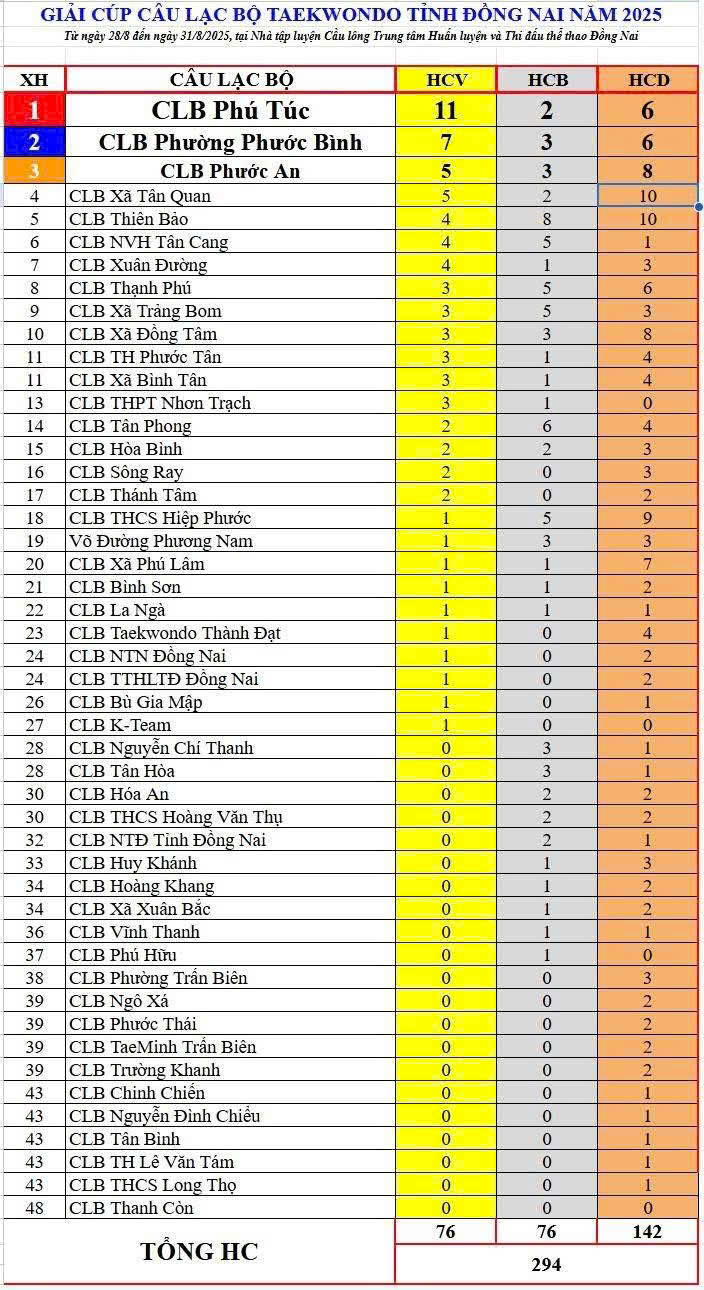 Tham gia tranh tài tại giải đấu, CLB Taekwondo phường Phước Bình đã giành vị trí nhì toàn đoàn với 7 HCV, 3 HCB và 6 HCĐ.