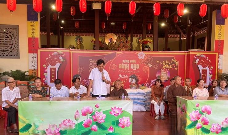 Lãnh đạo chính quyền địa phương cảm ơn Chùa Vĩnh Nghiêm và nhà hảo tâm đã đồng hành cùng địa phương chăm lo Tết cho người dân.