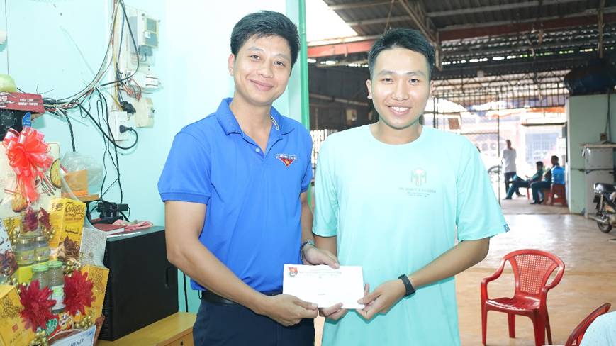 Đoàn phường Phước Bình thăm, tặng quà thanh niên Điểu Trung Kiên (khu phố Long Giang).