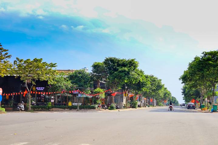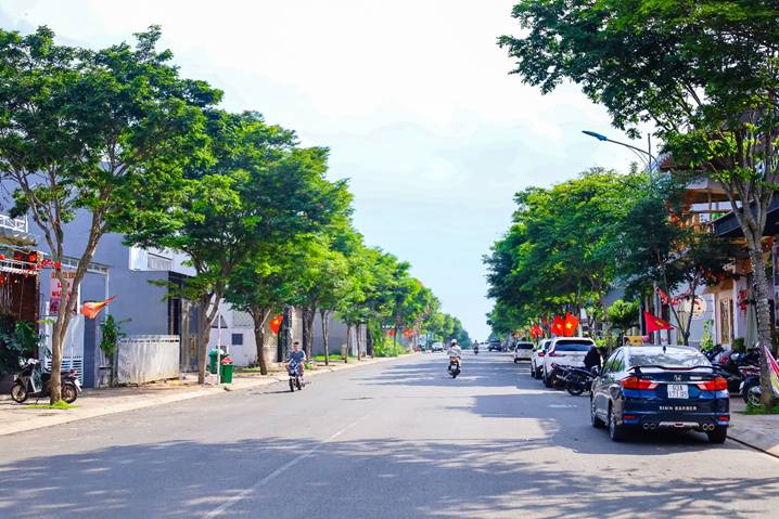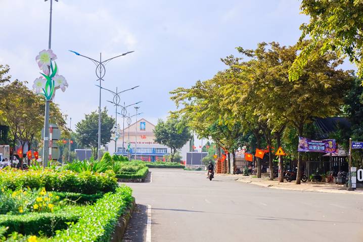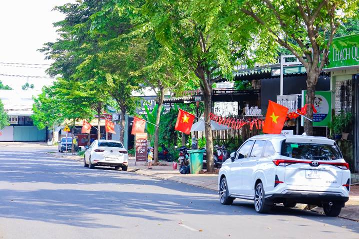 Cờ Đảng, cờ Tổ quốc được treo trên nhiều tuyến đường khu TTHC phường Phước Bình