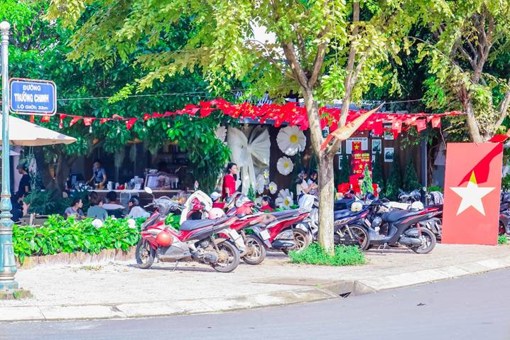 Không gian nhỏ của một quán coffee được bài trí nhiều hình ảnh, tư liệu gắn liền với thời khắc lịch sử trọng đại của dân tộc.