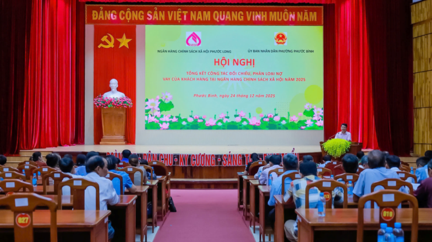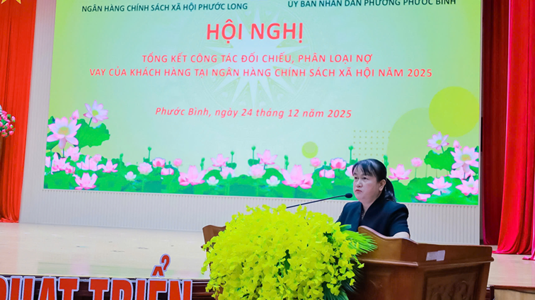 Sáng ngày 24/12, UBND phường Phước Bình cùng Phòng giao dịch Ngân hàng Chính sách xã hội Phước Long tổ chức hội nghị tổng kết công tác đối chiếu, phân loại nợ vay của khách hàng vay vốn trên địa bàn. Tham dự hội nghị có đồng chí Bùi Thị Hằng - UVBTV, Phó Chủ tịch UBND phường, Giám đốc Trung tâm Phục vụ hành chính công phường Phước Bình; đại diện lãnh đạo Phòng Giao dịch Ngân hàng chính sách xã hội Phước Long; đại diện lãnh đạo Công an phường; lãnh đạo các tổ chức hội nhận ủy thác, Trưởng khu phố, Tổ trưởng Tổ Tiết kiệm và vay vốn.