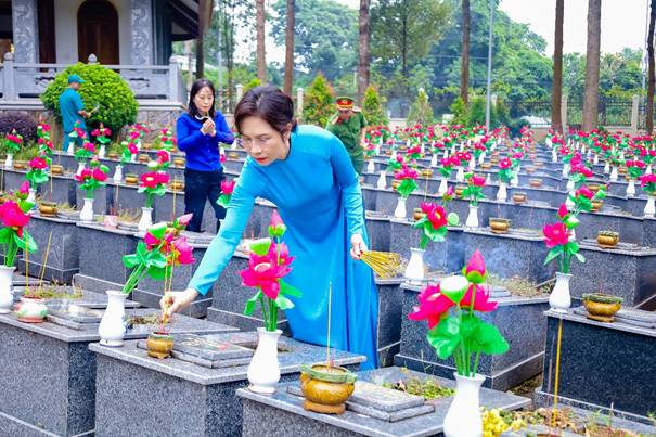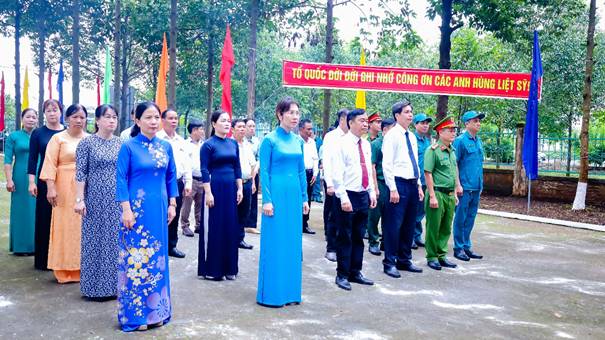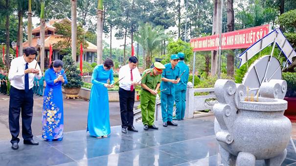 Trong không khí trang nghiêm và đầy xúc động, các đại biểu đã dành phút mặc niệm tưởng nhớ anh linh các anh hùng liệt sĩ và thắp nén nhang thơm để thể hiện lòng thành kính của các thế hệ hôm nay đối với các anh hùng liệt sĩ, những người đã không tiếc máu xương hiến dâng cả cuộc đời mình cho nền độc lập, tự do của dân tộc, làm tròn trách nhiệm vinh quang mà Tổ quốc giao phó, đem lại hạnh phúc muôn đời cho đất mẹ Việt Nam.