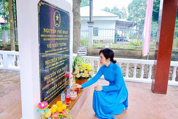 Tỉnh ủy viên, Bí thư Đảng ủy phường Phước Bình Huỳnh Thị Thùy Trang dâng hương tại Bia tưởng niệm liệt sĩ Bình Sơn cũ