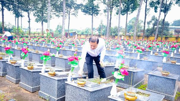 Các đại biểu thắp hương các phần mộ liệt sĩ tại Nghĩa trang liệt sĩ Phước Long