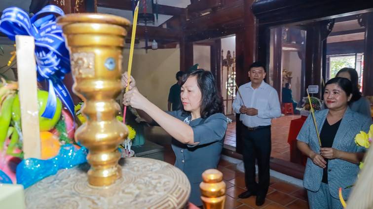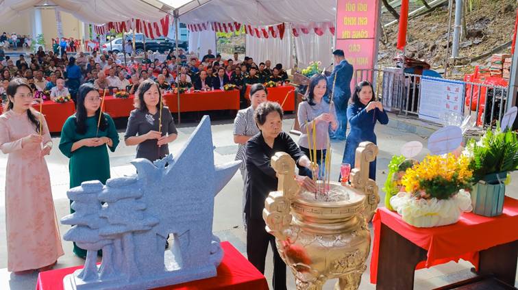 Ủy viên Ban Thường vụ Tỉnh ủy, Chủ tịch Ủy ban Mặt trận Tổ quốc Việt Nam tỉnh Đồng Nai Huỳnh Thị Hằng; Tỉnh ủy viên, Giám đốc Sở Văn hóa, Thể thao và Du lịch tỉnh; lãnh đạo Đảng ủy phường Bình Phước, Phước Long, Phước Bình dâng hương tại Đền thờ liệt sỹ và đồng bào tử nạn Núi Bà Rá
