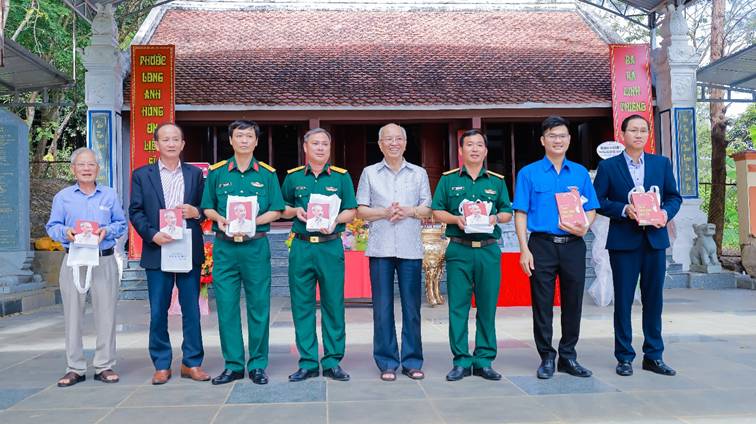 Đại tá, GS, TS, Viện trưởng viện nghiên cứu phát triển phương đông, UV Đoàn chủ tịch UBTW Liên hiệp các hội khoa học kỹ thuật – Nhà văn Trình Quang Phú tặng sách về Bác Hồ cho các đại biểu dự lễ.