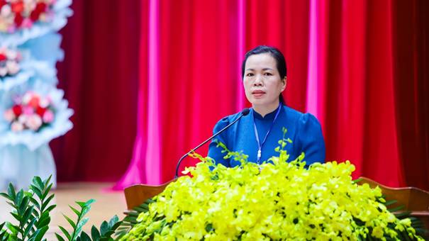 Đồng chí Trịnh Thị Hường – PCT.UBMTTQVN, Chủ tịch Hội LHPN phường phát biểu tại Đại hội.