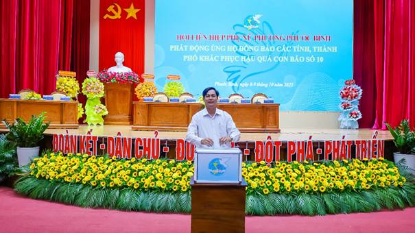 Đồng chí Hà Tấn Tân – UV.BTV, Chủ tịch UBMTTQVN phường đóng góp ủng hộ đồng bào bị ảnh hưởng do cơn bão số 10 gây ra
