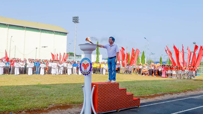 Đồng chí Nguyễn Văn Dũng, Phó Bí thư Đảng ủy, Chủ tịch UBND phường Phước Bình thắp sáng ngọn lửa truyền thống chính thức khai mạc Đại hội.