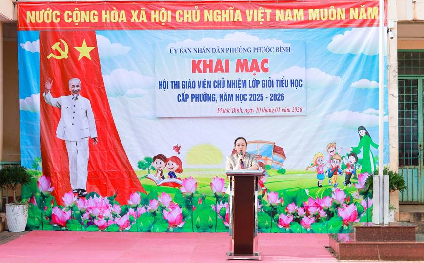 Sáng 10-1-2026 tại Trường Tiểu học Chu Văn An. UBND phường Phước Bình, tỉnh Đồng Nai tổ chức khai mạc hội thi giáo viên chủ nhiệm lớp giỏi cấp phường, năm học 2025-2026.