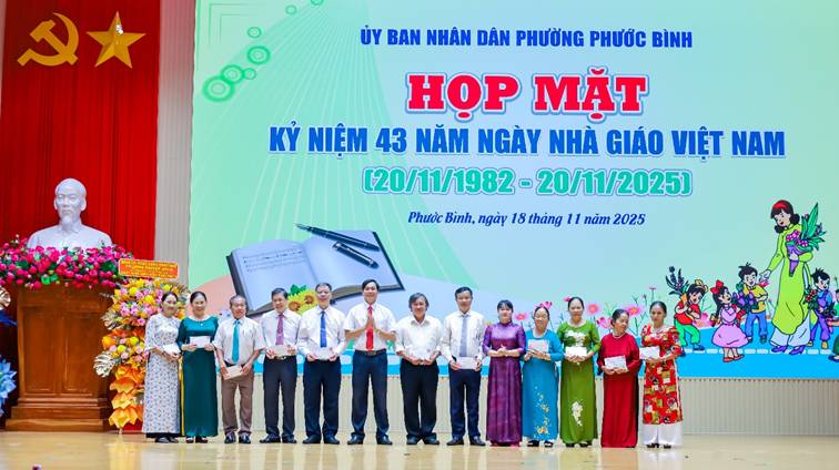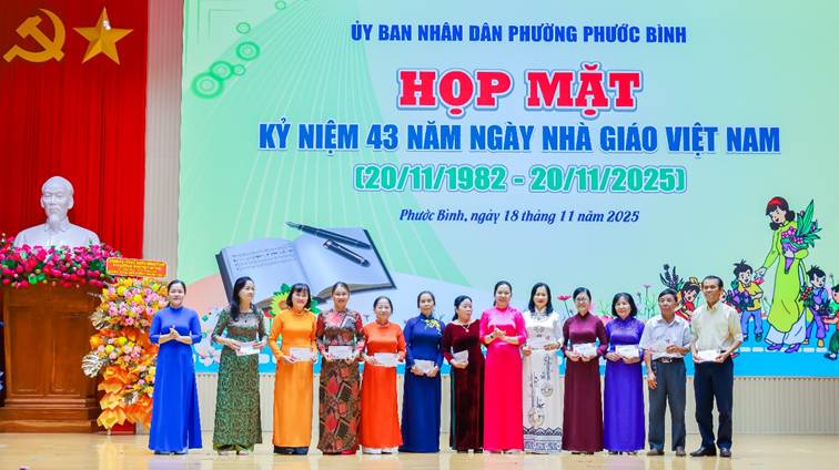 Kỷ niệm 43 năm Ngày Nhà giáo Việt Nam cũng là dịp để mỗi gia đình, mỗi học sinh và toàn xã hội chung tay chăm lo cho giáo dục; tiếp tục tạo điều kiện để các nhà trường thực hiện hiệu quả nhiệm vụ năm học 2025-2026; xây dựng môi trường giáo dục an toàn, thân thiện, kỷ cương, chất lượng; góp phần đào tạo thế hệ tương lai vừa có tri thức, vừa có nhân cách, góp phần vào công cuộc xây dựng phường Phước Bình ngày càng giàu đẹp, văn minh.