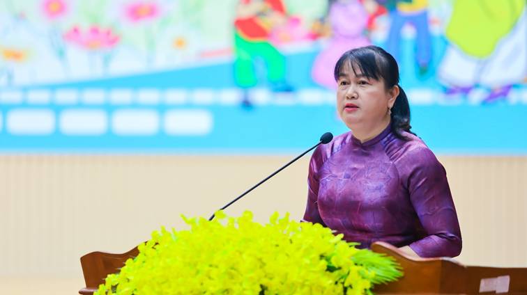 Ủy viên Ban Thường vụ, Phó Chủ tịch UBND, Giám đốc TT PVHCC phường Phước Bình Bùi Thị Hằng phát biểu chúc mừng