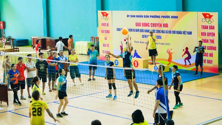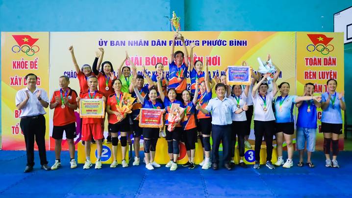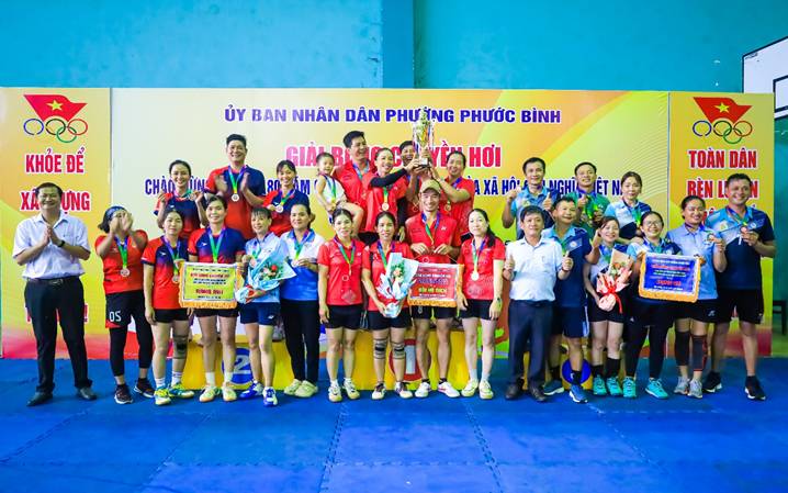 Chiều ngày 6/9 tại Nhà thi đấu đa năng Trung tâm Dịch vụ tổng hợp phường Phước Bình, Giải bóng chuyền hơi kỷ niệm 80 năm Cách mạng Tháng Tám và Quốc khánh Nước CHXHCN Việt Nam (2/9/1945 – 2/9/2025) đã chính thức bế mạc sau nhiều trận tranh tài sôi nổi, hấp dẫn cùng tinh thần đoàn kết cao.