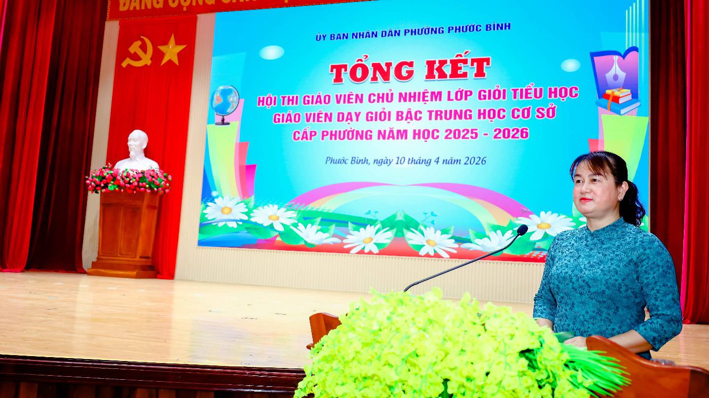 Chiều ngày 10/4, UBND phường Phước Bình tổ chức Hội nghị tổng kết Hội thi Giáo viên chủ nhiệm lớp giỏi tiểu học, Hội thi Giáo viên dạy giỏi bậc THCS cấp phường năm học 2025 – 2026. Dự hội nghị có bà Bùi Thị Hằng, Ủy viên Ban Thường vụ, Phó Chủ tịch UBND phường; bà Trịnh Thị Hường, Phó Chủ tịch Ủy ban MTTQ Việt Nam, Chủ tịch Hội LHPN phường; bà Trần Thị Phương Linh, Trưởng Phòng Văn hóa – Xã hội phường; Các ông bà thành viên Ban Tổ chức, Ban Giám khảo các Hội thi; Ban Giám hiệu các Trường Mầm non, Tiểu học, TH&THCS trên địa bàn phường.