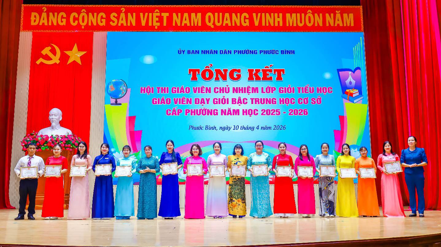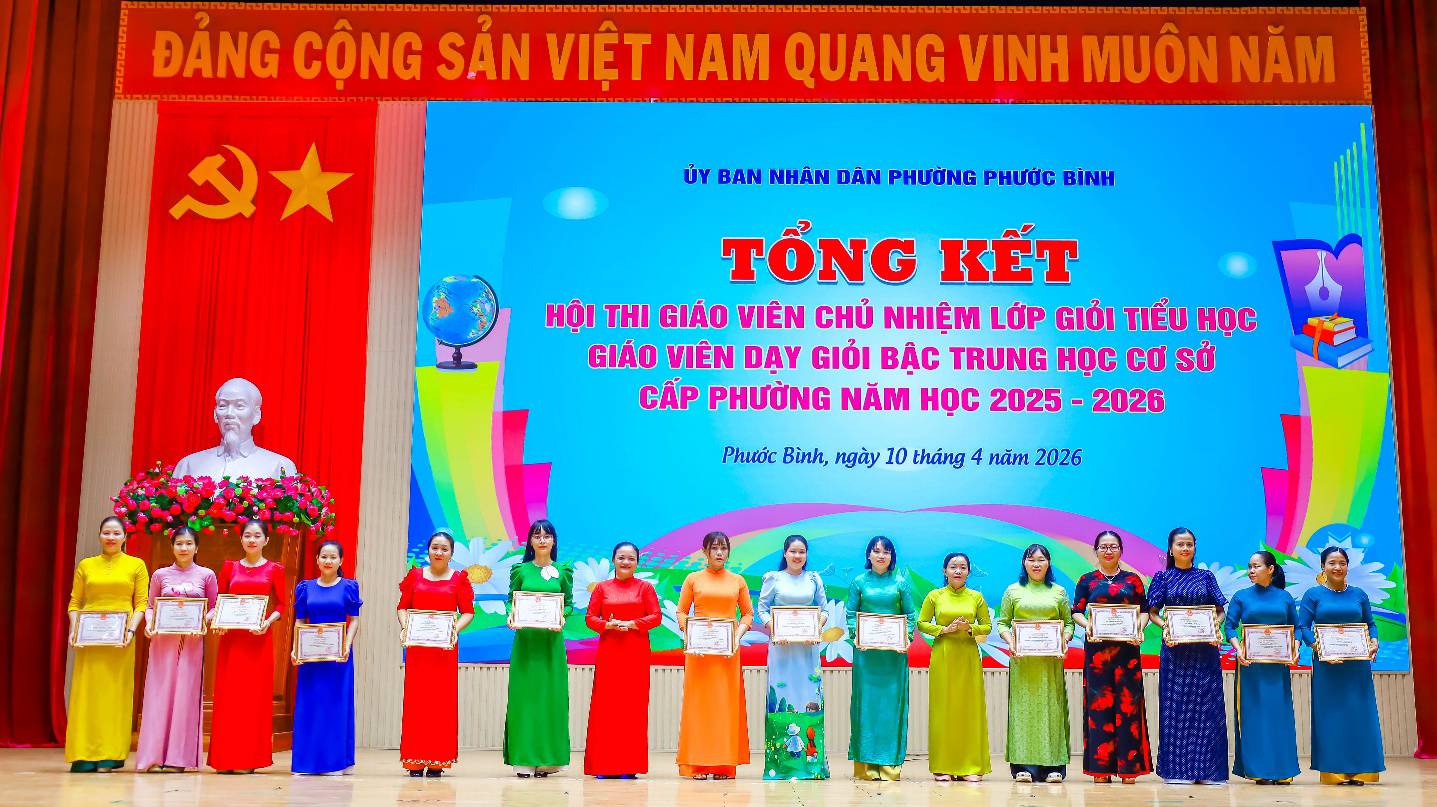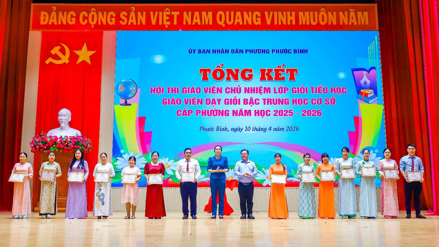 Kết quả, 46 giáo viên tham dự được công nhận đạt danh hiệu giáo viên chủ nhiệm lớp giỏi tiểu học cấp phường, năm học 2025-2026; 33 giáo viên tham dự được công nhận đạt danh hiệu giáo viên dạy giỏi bậc THCS cấp phường, năm học 2025-2026. Ban Tổ chức cũng tặng giấy khen cho 06 tập thể đạt thành tích và 16 giáo viên đạt thành tích xuất sắc trong Hội thi Giáo viên chủ nhiệm lớp giỏi tiểu học cấp phường, năm học 2025 – 2026 và tặng giấy khen cho 03 tập thể đạt thành tích và 12 giáo viên đạt thành tích xuất sắc trong Hội thi.