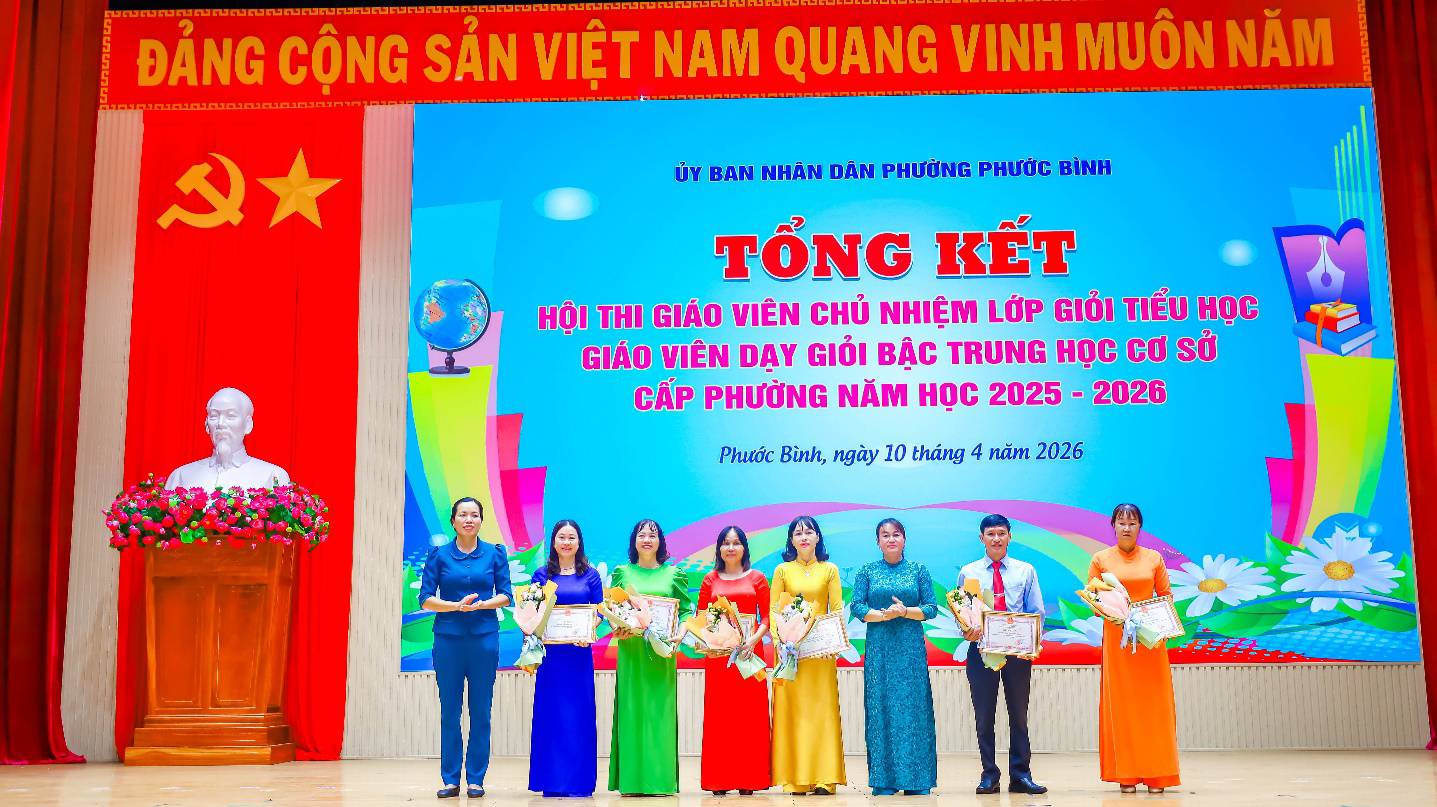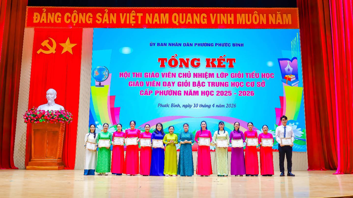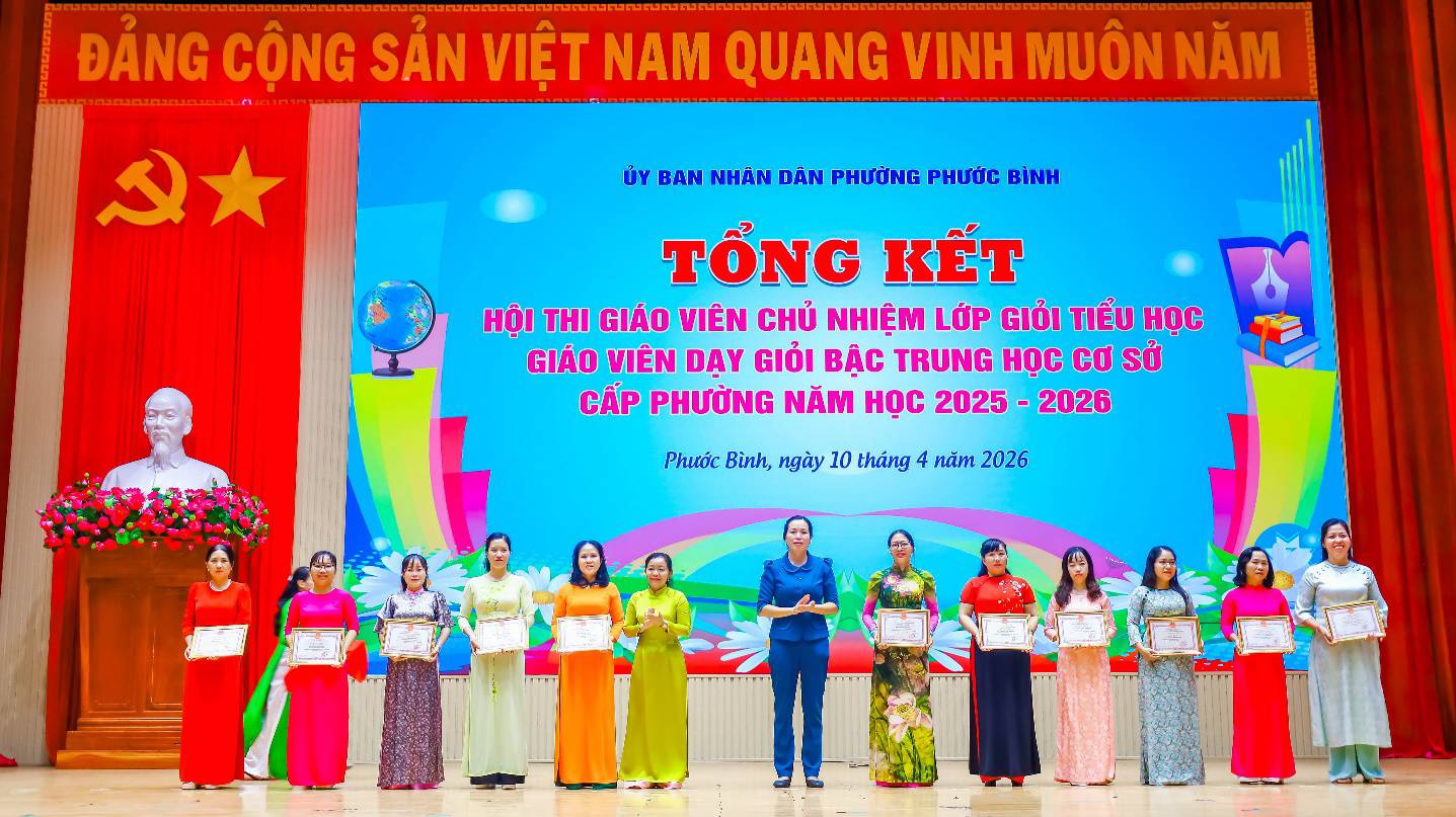 Kết quả, 46 giáo viên tham dự được công nhận đạt danh hiệu giáo viên chủ nhiệm lớp giỏi tiểu học cấp phường, năm học 2025-2026; 33 giáo viên tham dự được công nhận đạt danh hiệu giáo viên dạy giỏi bậc THCS cấp phường, năm học 2025-2026. Ban Tổ chức cũng tặng giấy khen cho 06 tập thể đạt thành tích và 16 giáo viên đạt thành tích xuất sắc trong Hội thi Giáo viên chủ nhiệm lớp giỏi tiểu học cấp phường, năm học 2025 – 2026 và tặng giấy khen cho 03 tập thể đạt thành tích và 12 giáo viên đạt thành tích xuất sắc trong Hội thi.