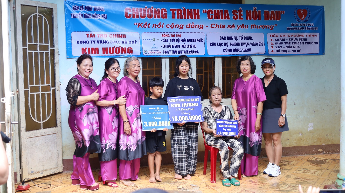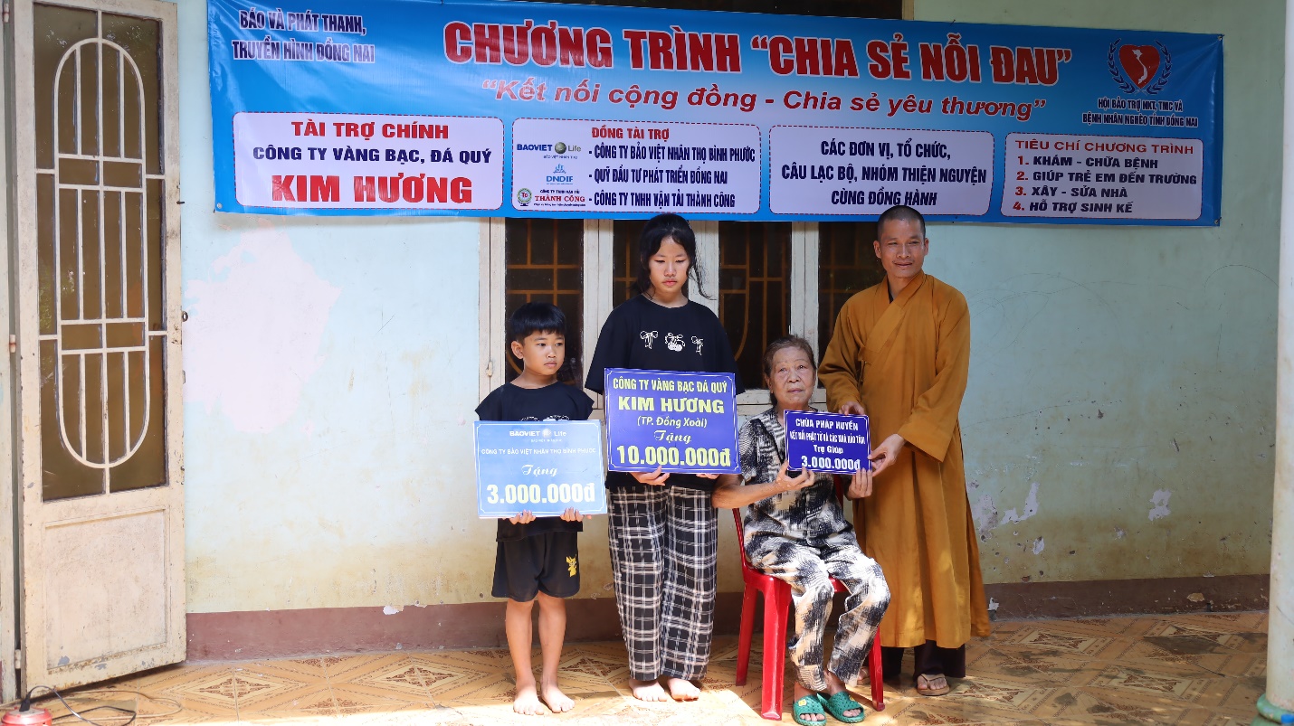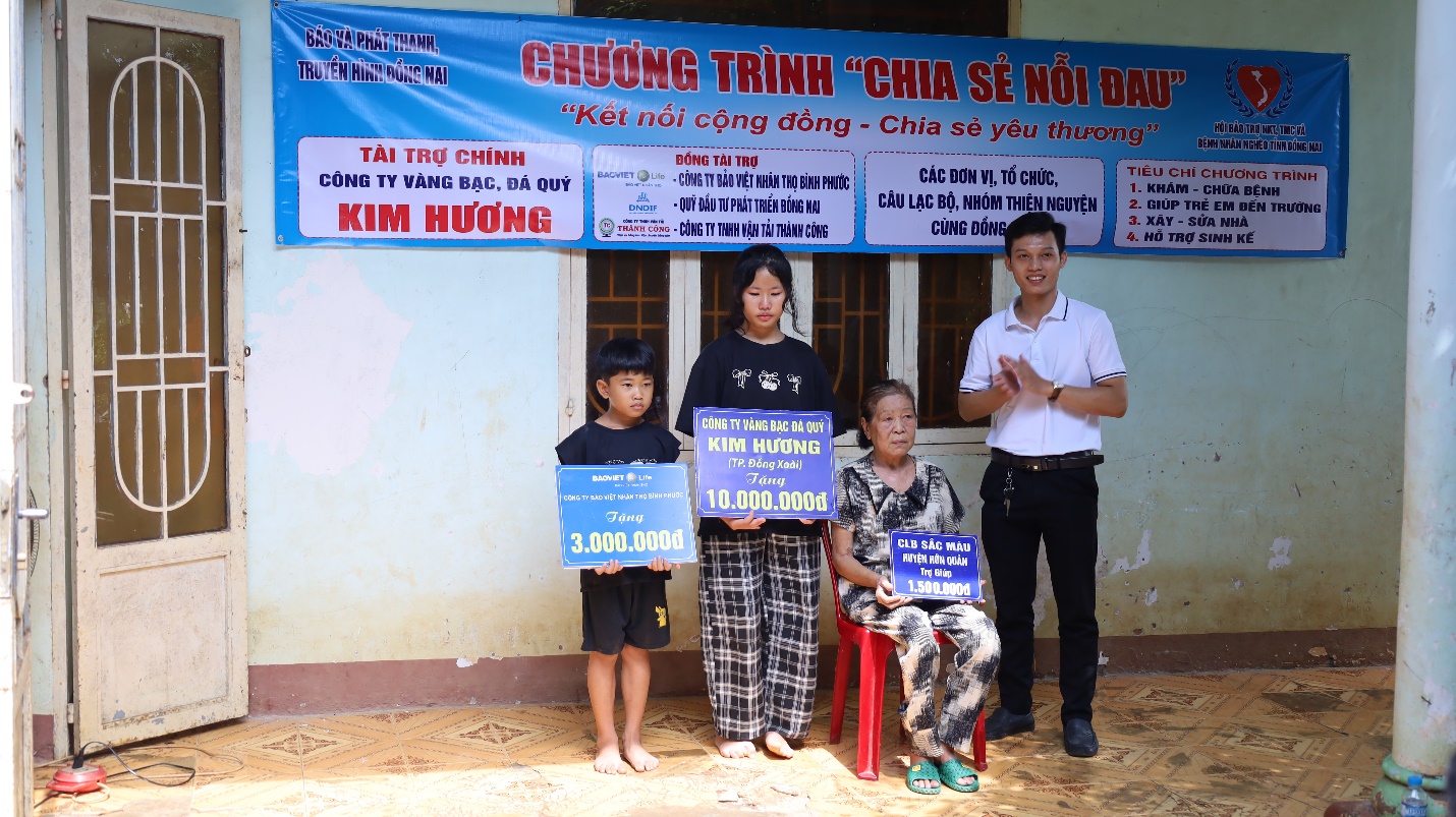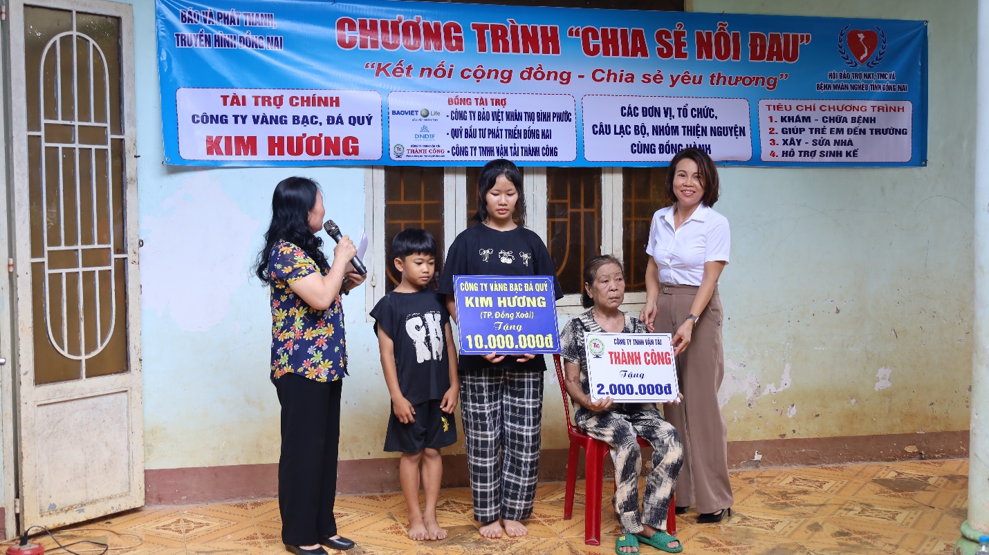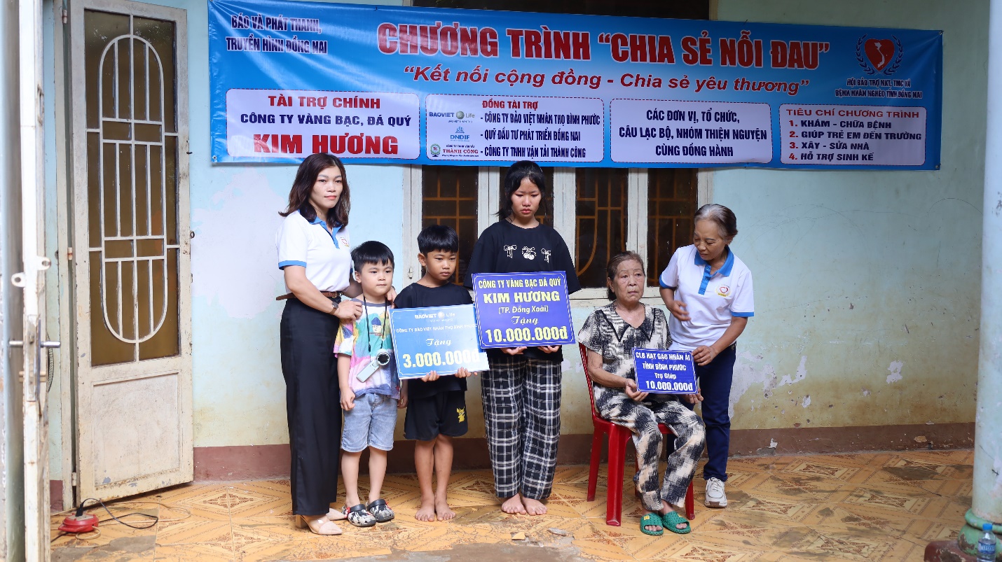 Ngày 12-7, Báo và phát thanh, truyền hình Đồng Nai phối hợp với Hội Bảo trợ người khuyết tật - trẻ mồ côi và bệnh nhân nghèo tỉnh tổ chức chương trình “Chia sẻ nỗi đau” trợ giúp gia đình bà Trương Thị Hồng Hoàng (ngụ Tổ dân phố An Lương, phường Phước Bình, tỉnh Đồng Nai) với sự đồng hành của nhà tài trợ chính là Công ty Vàng bạc đá quý Kim Hương (phường Bình Phước) cùng các đơn vị đồng tài trợ: Công ty TNHH Vận tải Thành Công, Quỹ Đầu tư phát triển tỉnh Đồng Nai, Công ty Bảo Việt nhân thọ Bình Phước và các câu lạc bộ, đội, nhóm thiện nguyện trong tỉnh. Dự chương trình có đồng chí Bùi Thị Hằng – UV BTV, Phó Chủ tịch UBND kiêm Giám đốc Trung tâm phục vụ hành chính công phường Phước Bình; đ/c Nguyễn Huy Thắng – ĐUV, Phó Chủ tịch Thường trực Ủy ban MTTQVN kiêm Chủ tịch Hội Nông dân phường.
