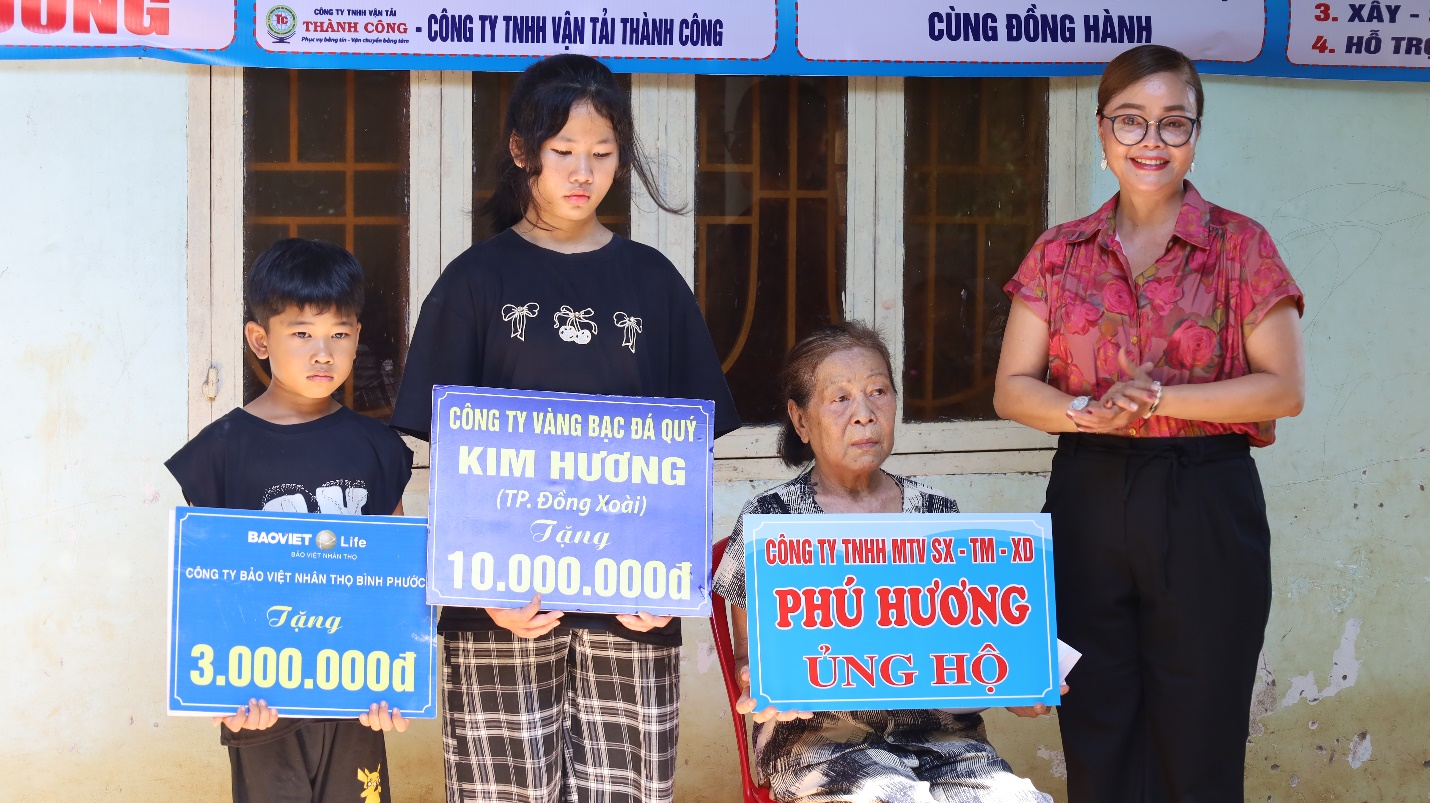Tại buổi lễ, các câu lạc bộ, đội, nhóm thiện nguyện và các nhà hảo tâm đã trao tặng gia đình bà Hoàng số tiền hơn 137 triệu đồng, trong đó, trích trên 27 triệu đồng để hỗ trợ thuốc men, điều trị bệnh cho cả 2 ông bà; còn lại 110 triệu đồng gửi tiết kiệm giúp bà Hoàng có thêm điều kiện chăm sóc chồng, đầu tư chuồng trại chăn nuôi cải thiện cuộc sống và lo cho hai cháu ăn học….