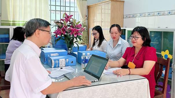 Đoàn tập trung kiểm tra hệ thống minh chứng; đối chiếu mức độ đáp ứng các tiêu chí chất lượng giáo dục của nhà trường trong giai đoạn 2020–2025