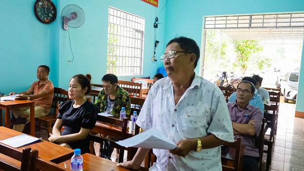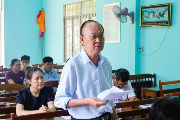 Các đại biểu tham gia góp ý tại buổi sinh hoạt chi bộ khu phố 1 tháng 8/2025