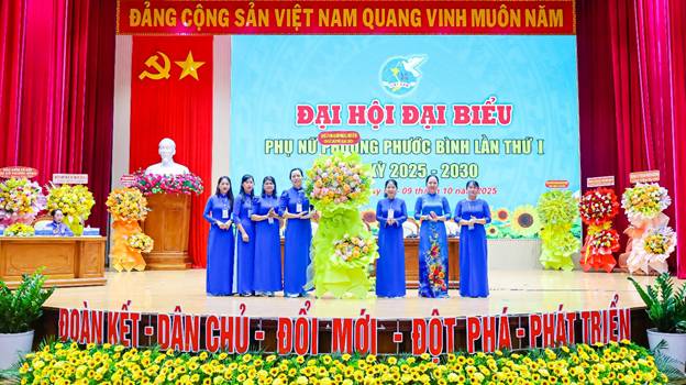 Sáng ngày 9/10, Đại hội đại biểu Hội Liên hiệp Phụ nữ phường Phước Bình lần thứ I, nhiệm kỳ 2025 – 2030 đã diễn ra thành công tốt đẹp với sự tham gia của 145 đại biểu chính thức, đại diện cho 5.627 hội viên phụ nữ toàn phường. Dự đại hội có đồng chí Phạm Thị Anh Thư – Phó Bí thư Thường trực Đảng ủy, Chủ tịch HĐND phường; Hà Tấn Tân – UVBTV, Chủ tịch UBMTTQVN phường; lãnh đạo Đảng ủy, HĐND, UBND, UBMTTQVN, các hội đoàn thể, lực lượng vũ trang, Đồn biên phòng kết nghĩa Bù Gia Mập, Hội LHPN phường Phước Long, các đại biểu khách mời… Đồng chí Trịnh Thị Hường – PCT.UBMTTQ Việt Nam, Chủ tịch Hội LHPN phường Phước Bình phát biểu khai mạc Đại hội.