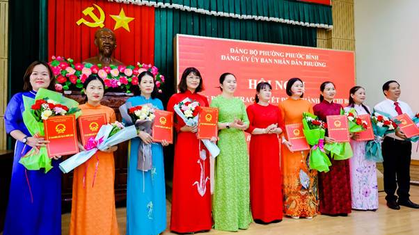 Đảng ủy UBND phường trao QĐ và tặng hoa chúc mừng