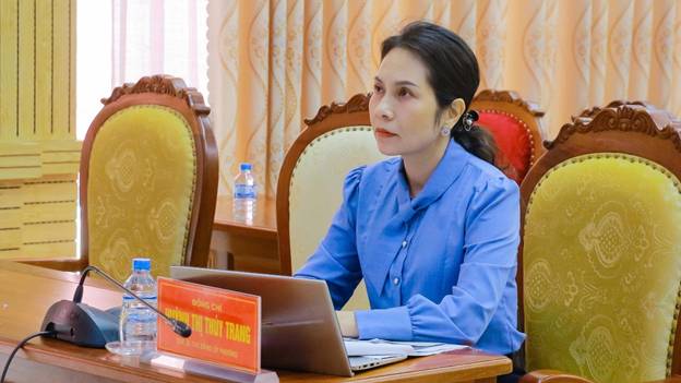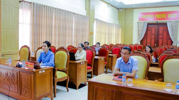 Tỉnh ủy viên, Bí thư Đảng ủy phường Phước Bình Huỳnh Thị Thùy Trang chủ trì điểm cầu phường Phước Bình