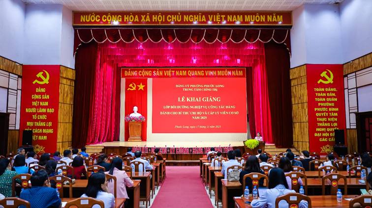 Sáng ngày 17/11, Đảng ủy phường Phước Bình phối hợp cùng Trung tâm Chính trị phường Phước Long đã tổ chức khai giảng lớp Bồi dưỡng nghiệp vụ công tác Đảng dành cho Bí thư chi bộ và cấp ủy viên cơ sở năm 2025. Dự khai giảng có đồng chí Đoàn Ngọc Lâm – UVBTV, Trưởng Ban Xây dựng Đảng kiêm Giám đốc TT Bồi dưỡng chính trị phường Phước Long; Võ Đông Quang – UVBTV, Trưởng Ban Xây dựng Đảng Đảng ủy phường Phước Bình; lãnh đạo Văn phòng Đảng ủy, Ủy ban Kiểm tra, Ban Xây dựng Đảng cùng 136 học viên là Bí thư, Phó Bí thư, Chi ủy viên các Đảng ủy, Chi bộ cơ sở trực thuộc Đảng ủy phường Phước Bình.