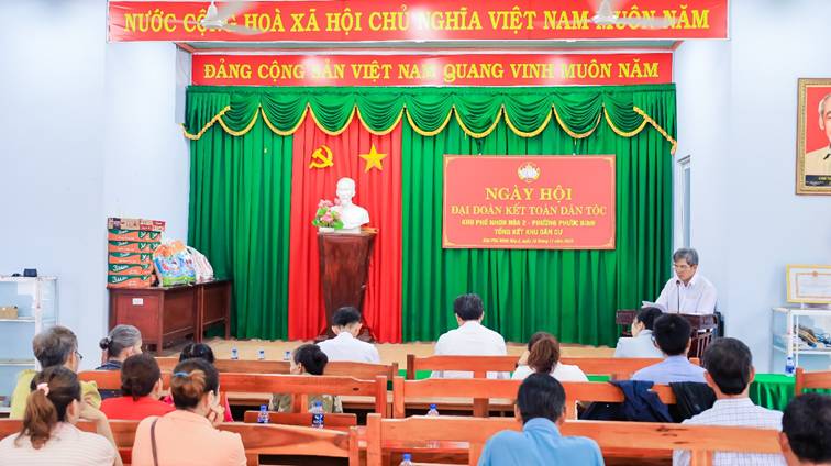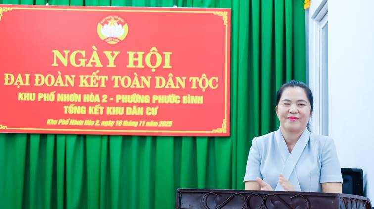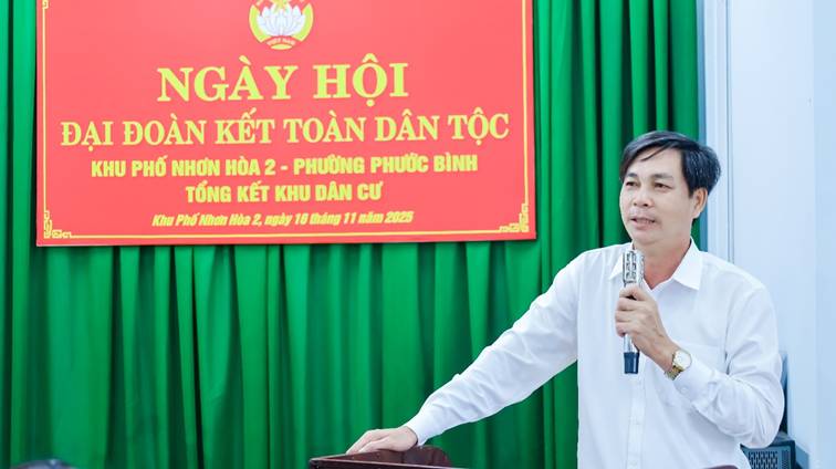 Chiều ngày 16/11, Ban điều hành, Ban Công tác mặt trận khu phố Nhơn Hòa 2, phường Phước Bình đã hân hoan tổ chức Ngày hội Đại đoàn kết toàn dân năm 2025. Về dự Ngày hội với Nhân dân khu phố có ông Hà Tấn Tân – UVBTV Đảng ủy, Chủ tịch UBMTTQVN phường; bà Nguyễn Thị Hồng Quế - UVBTV Đảng ủy, Phó Chủ tịch HĐND phường Phước Bình. Ông Trần Văn Xanh – Trưởng khu phố Nhơn Hòa 2 phát biểu khai mạc và ôn lại 95 năm Ngày truyền thống Mặt trận Tổ quốc Việt Nam (18/11/1930 – 18/11/2025).