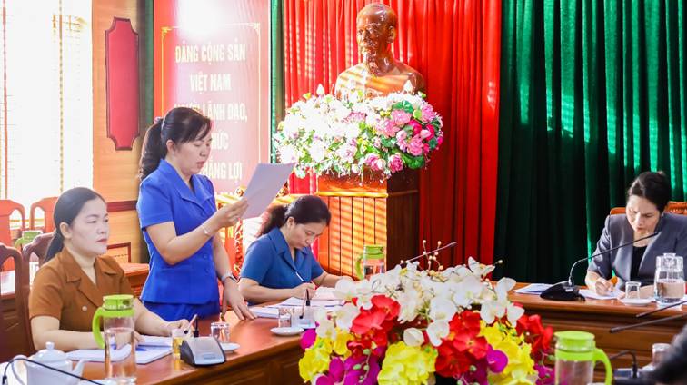 Đồng chí Nguyễn Thị Hồng Quế - UVBTV Đảng ủy, Phó Chủ tịch HĐND phường phát biểu tại cuộc họp